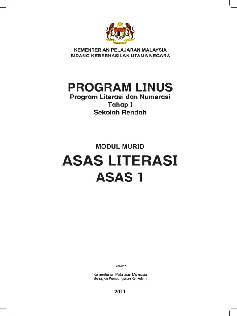 Modul linus literasi numerasi modul guru edisi 201120122013 modul guru literasi linus asas 1 modul guru literasi linus asas 2. Ketika ini guru Tahun 1 telah memulakan sesi pengajaran pembelajaran untuk murid baharu Tahun 1 mnggunakan medium KSSR. Oleh itu Modul Pengajaran Asas Literasi Asas 3 menggunakan pendekatan berikut.