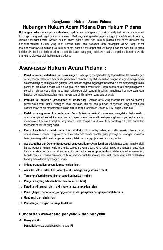 Materi hukum acara pidana lengkap. Kami membahas hukum pidana dan acara pidana. Ketua Tim Pengusul a. Hukum Acara Pidana Secara umum hukum acara pidana dapat dikatakan sebagai susunan atau tata cara aturan bagaimana negara serta perantara alat-alat kekuasan suatu negara tersebut menggunakan haknya untuk memberikan hukuman atau menghukum sehingga ia memuat acara pidana.