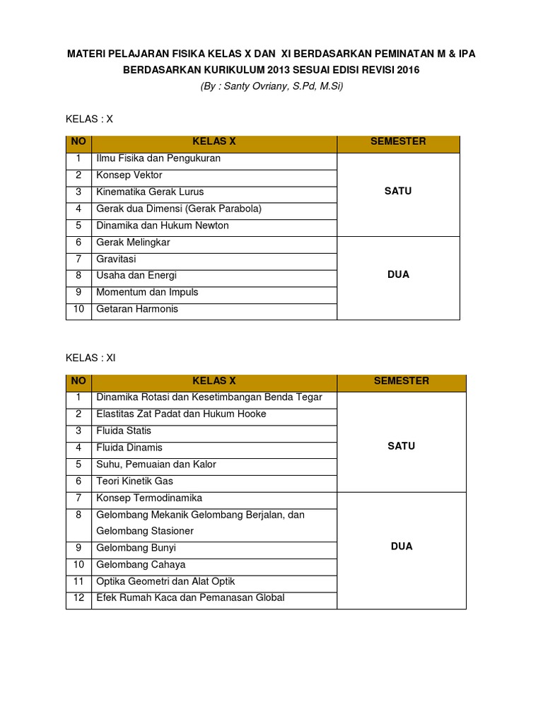Materi Pelajaran Fisika Kelas X Dan Xi Berdasarkan Peminatan M Pdf